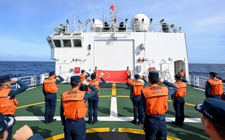 中国海警在黄岩岛海域缅怀先烈