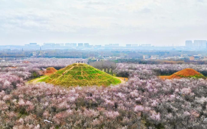 西安市明秦王墓桃花林迎来最佳观赏期